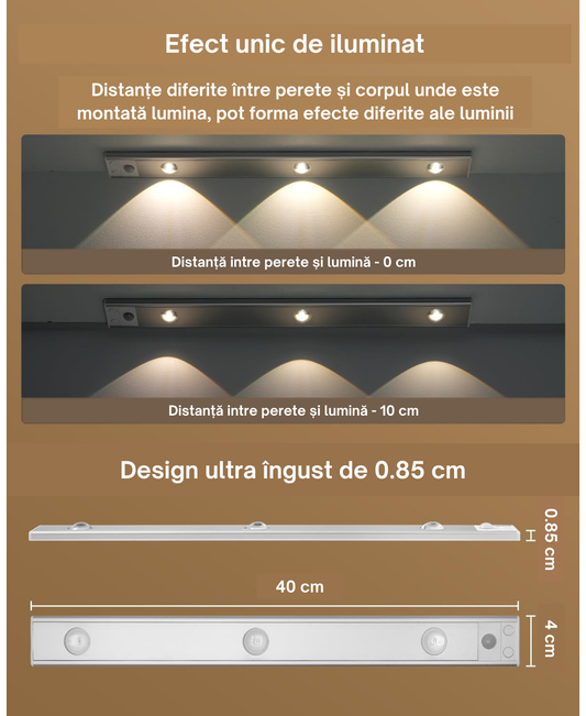 Bandă led cu Senzor de Mișcare cu 3 Moduri de Lumină - Cald, Mediu, Rece!